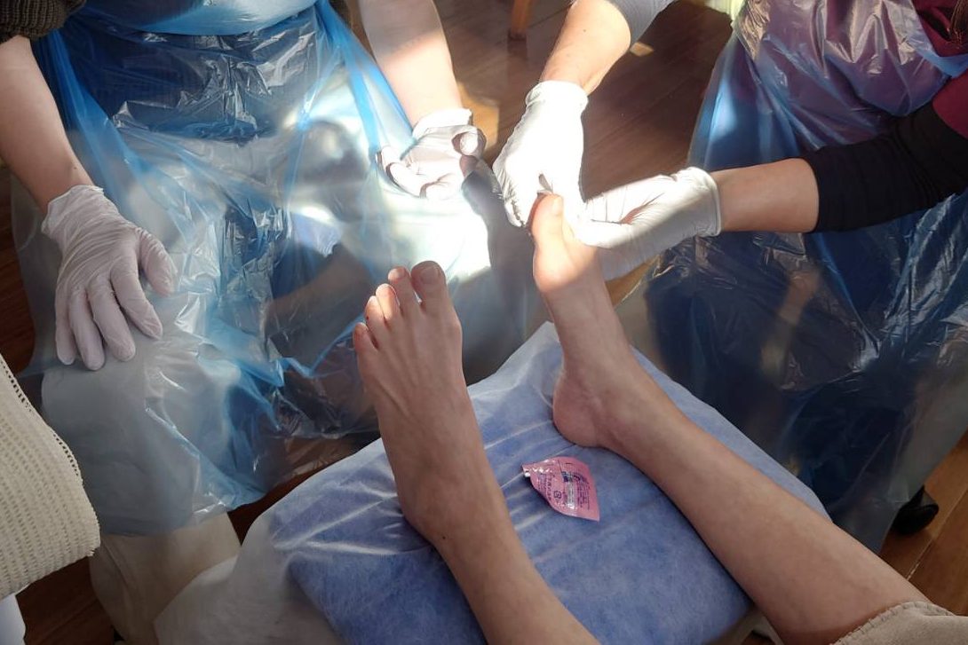 | 第5回 | 8/5(水) 9:00~16:00 | 【午前】各疾患の指導方法・おさらい、フットケアボランティアの方へのケア 【午後】施設訪問ボランティア実習 |