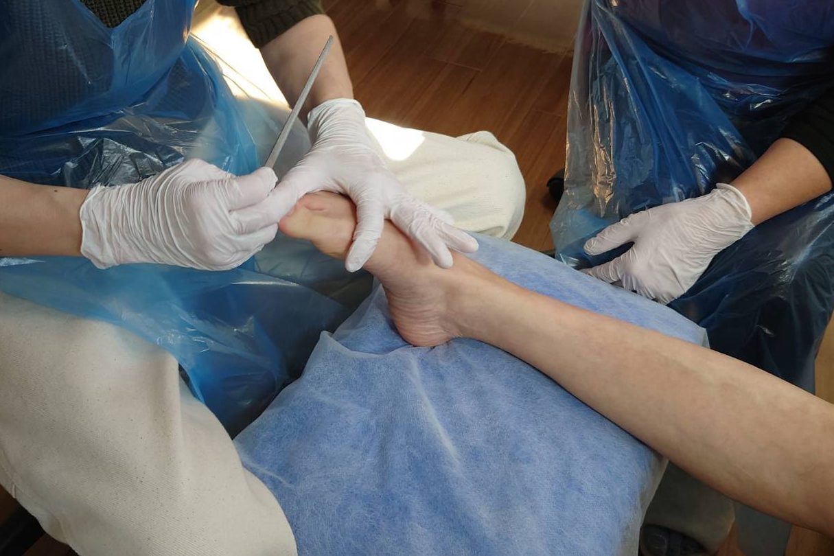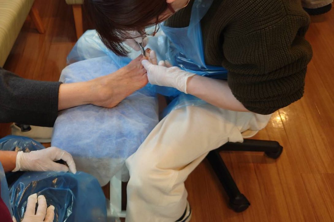 | 第1回 | 6/10(水) 9:00~16:00 | 【午前】足と爪の基礎知識、爪切り、足浴、感染対策、観察・記録方法の習得 【午後】器具の使い方と爪切り・足浴・トリートメントの実践技術習得 |